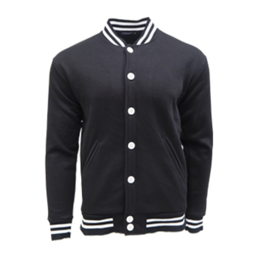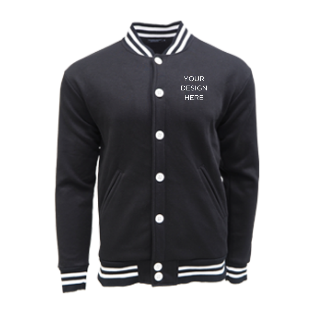 Classic varsity jacket CRJ1100 suitable for corporate teams, events, and branded merchandise. Made from cotton-poly CVC fleece with an oversized straight-cut fit.