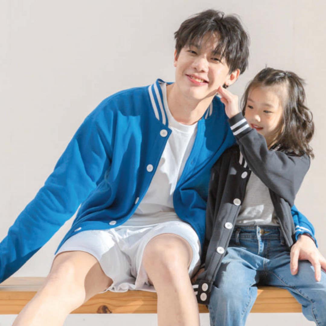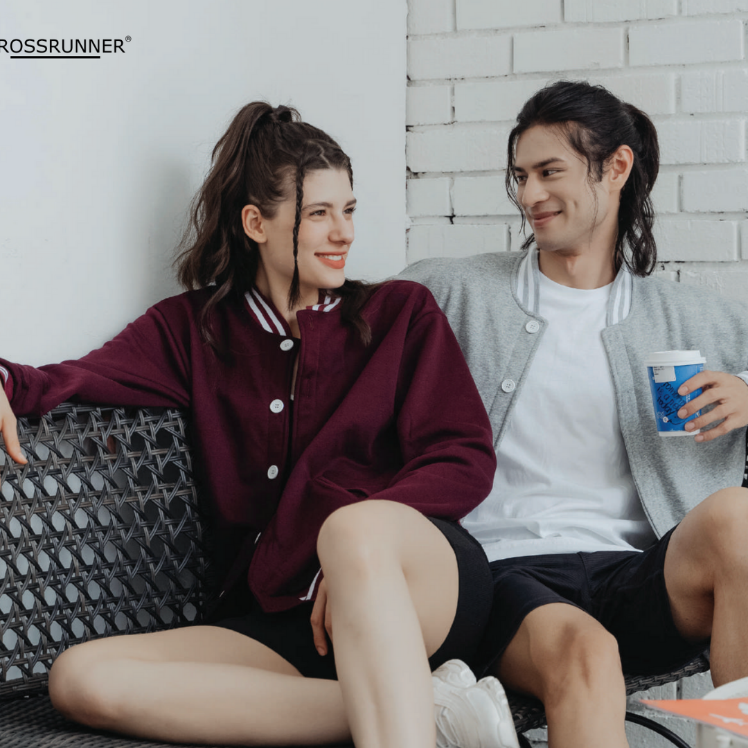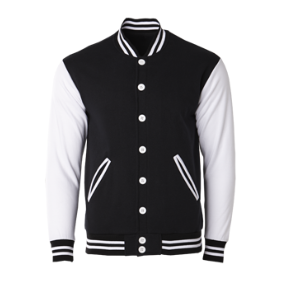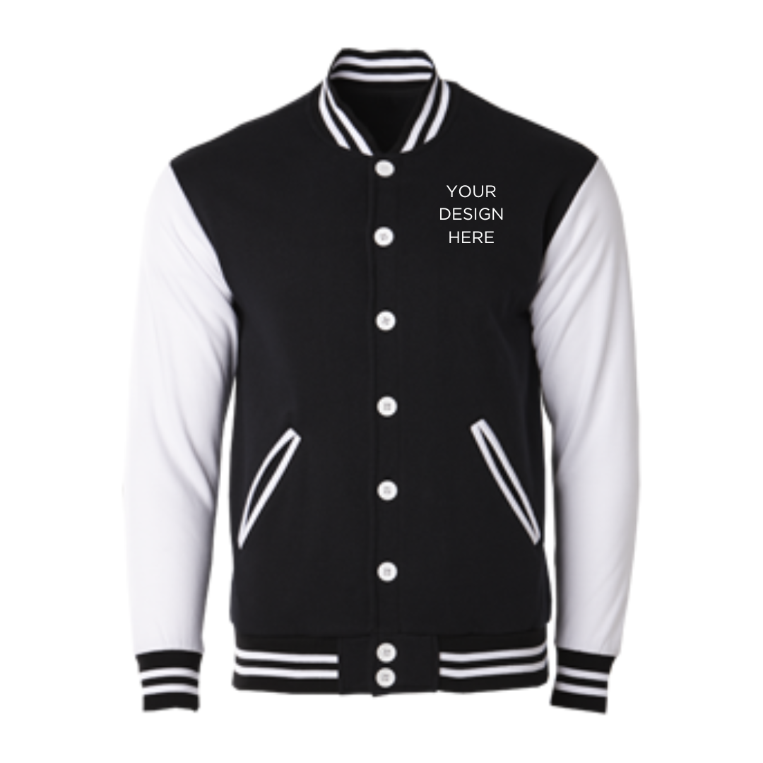 Classic varsity jacket CRJ1100 suitable for corporate teams, events, and branded merchandise. Made from cotton-poly CVC fleece with an oversized straight-cut fit.