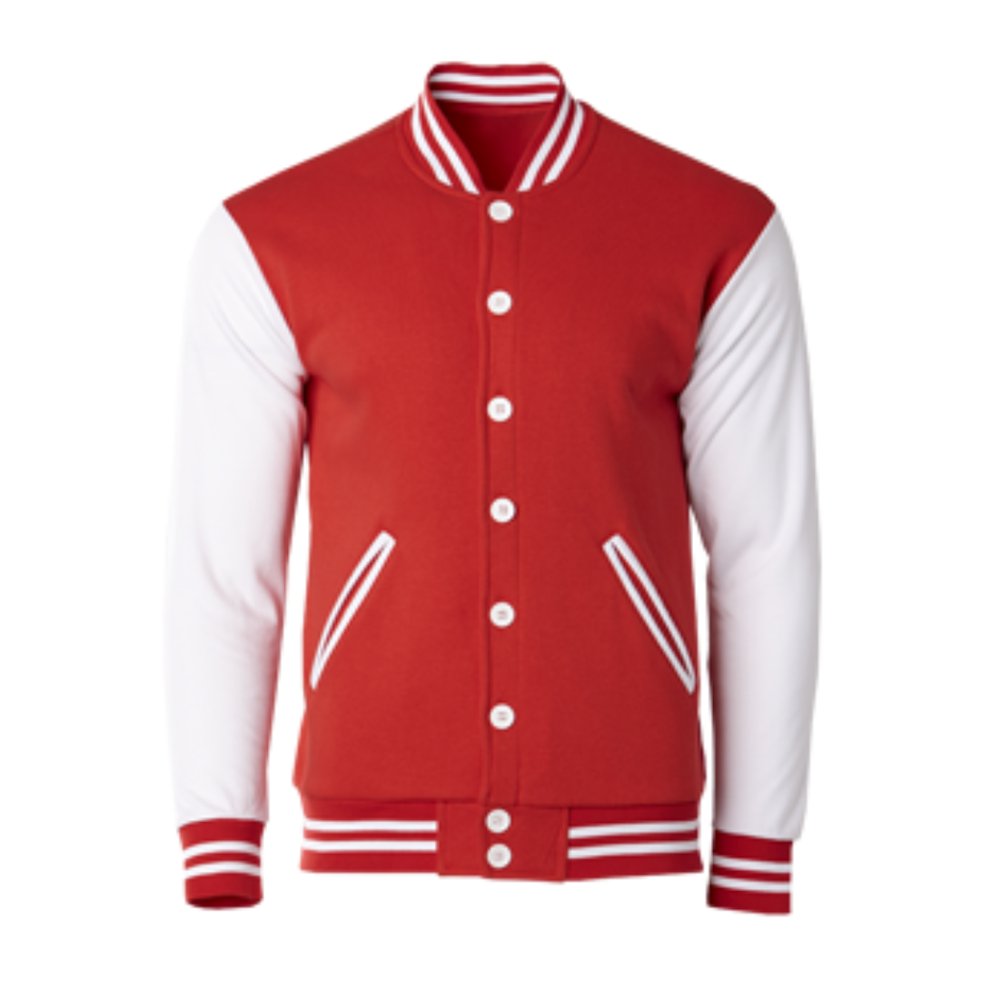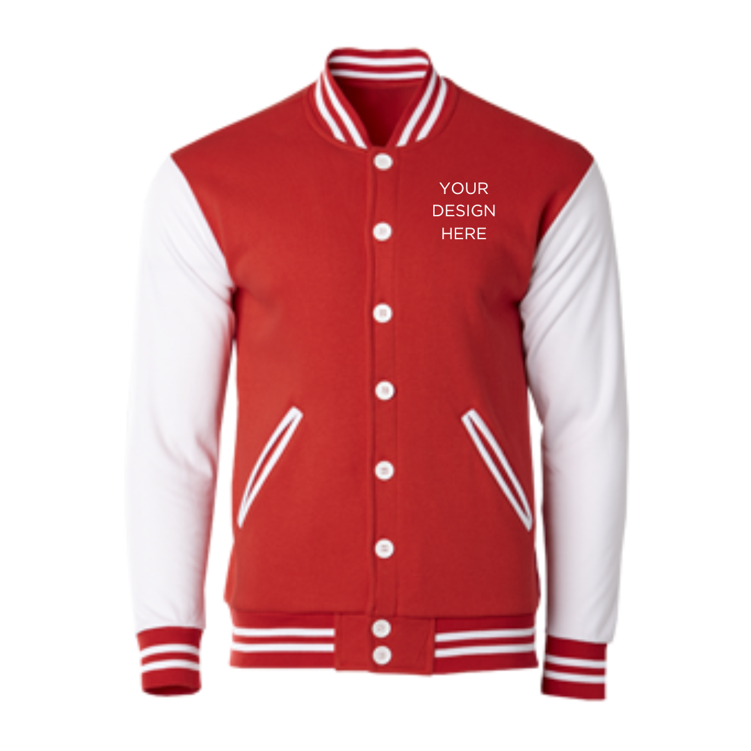 Classic varsity jacket CRJ1100 suitable for corporate teams, events, and branded merchandise. Made from cotton-poly CVC fleece with an oversized straight-cut fit.