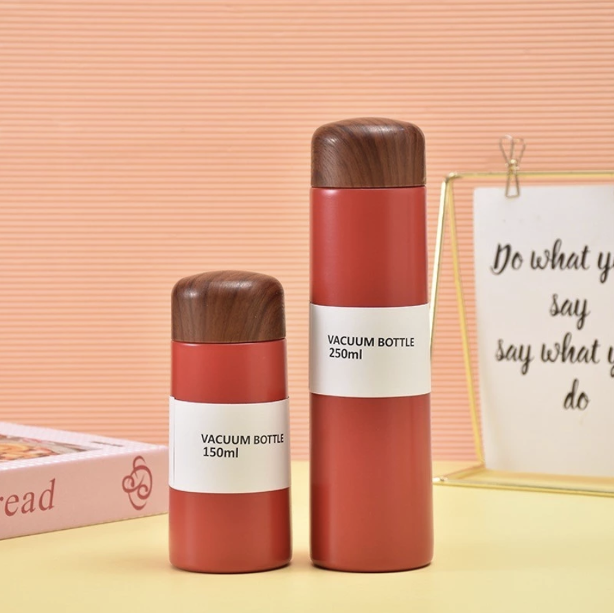 Elevate your daily hydration game with this sleek 250ml thermos bottle, crafted for those who appreciate form, function, and a touch of nature. Featuring a minimalist matte body and a wood-textured cap, this bottle combines style with practicality—perfect for on-the-go professionals, gift boxes, or eco-conscious giveaways.