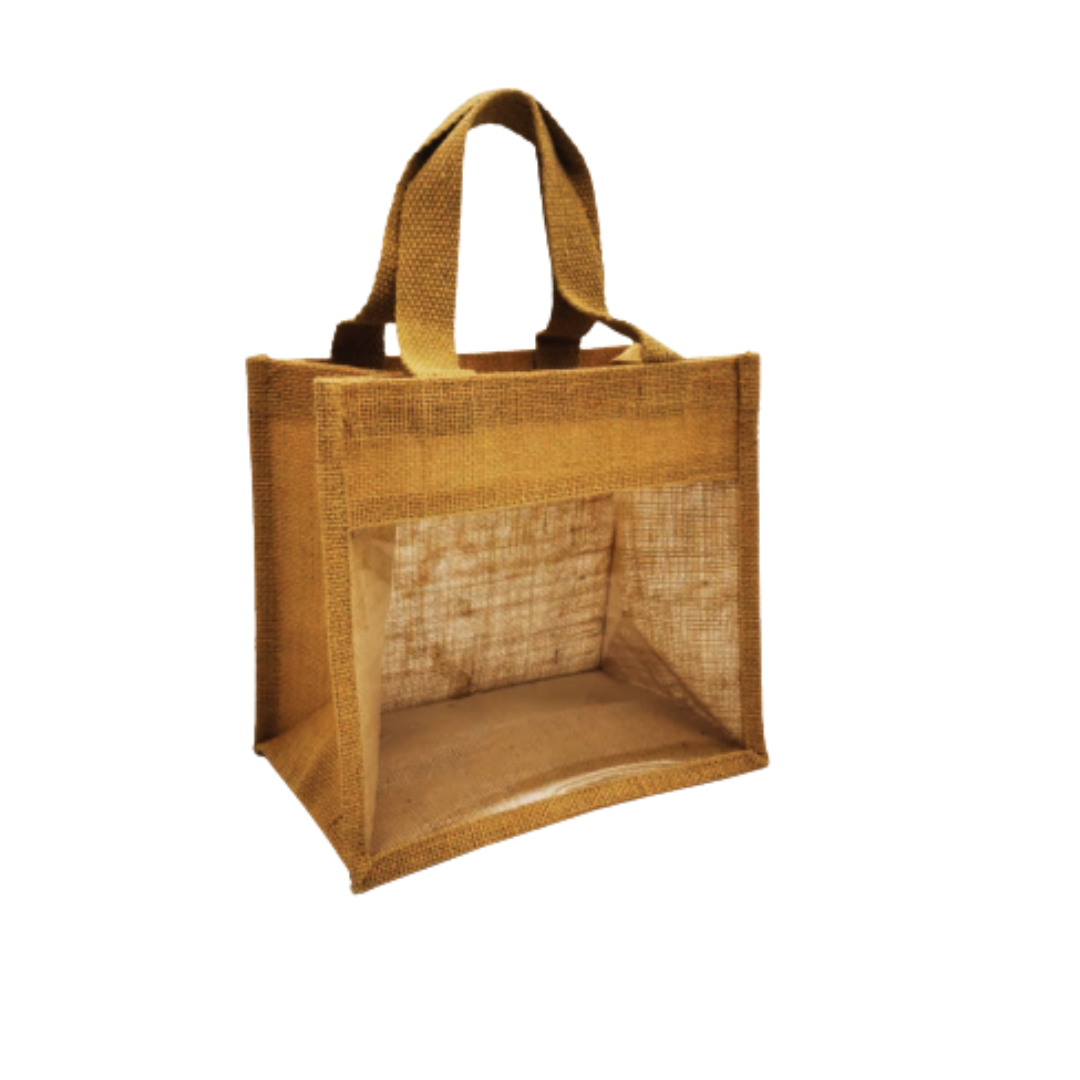 Medium Jute Gift Bag with Transparent Window – Natural Beige Brown