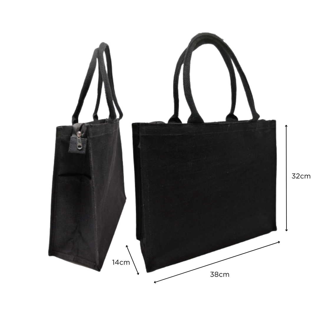 🖤 Black Juco Zipper Tote Bag