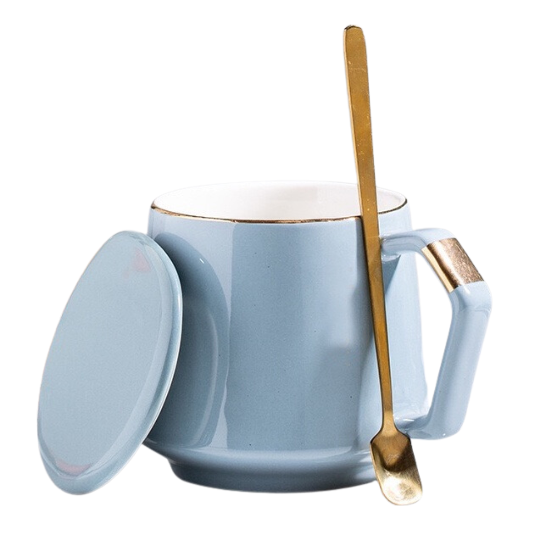 Elevate your sipping ritual with the MUGGO Mug — a charming blend of elegance and function. Designed with a modern flair, this 360ml ceramic mug comes with a matching lid and gold-toned spoon, making it your perfect companion for coffee, tea, or hot chocolate.