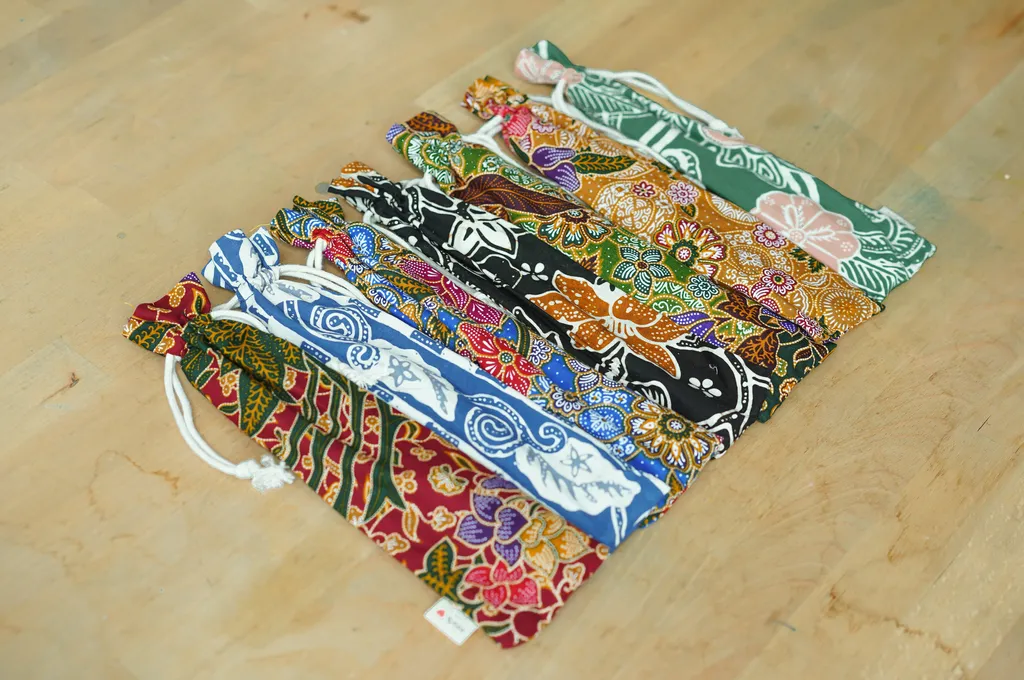 Sip sustainably with Dignity's Eco Straw Set! It includes three stainless steel straws: one for smoothies, one for your everyday drinks, and a brush for cleaning them. Complete with a vibrant batik drawstring pouch. Go green with style!