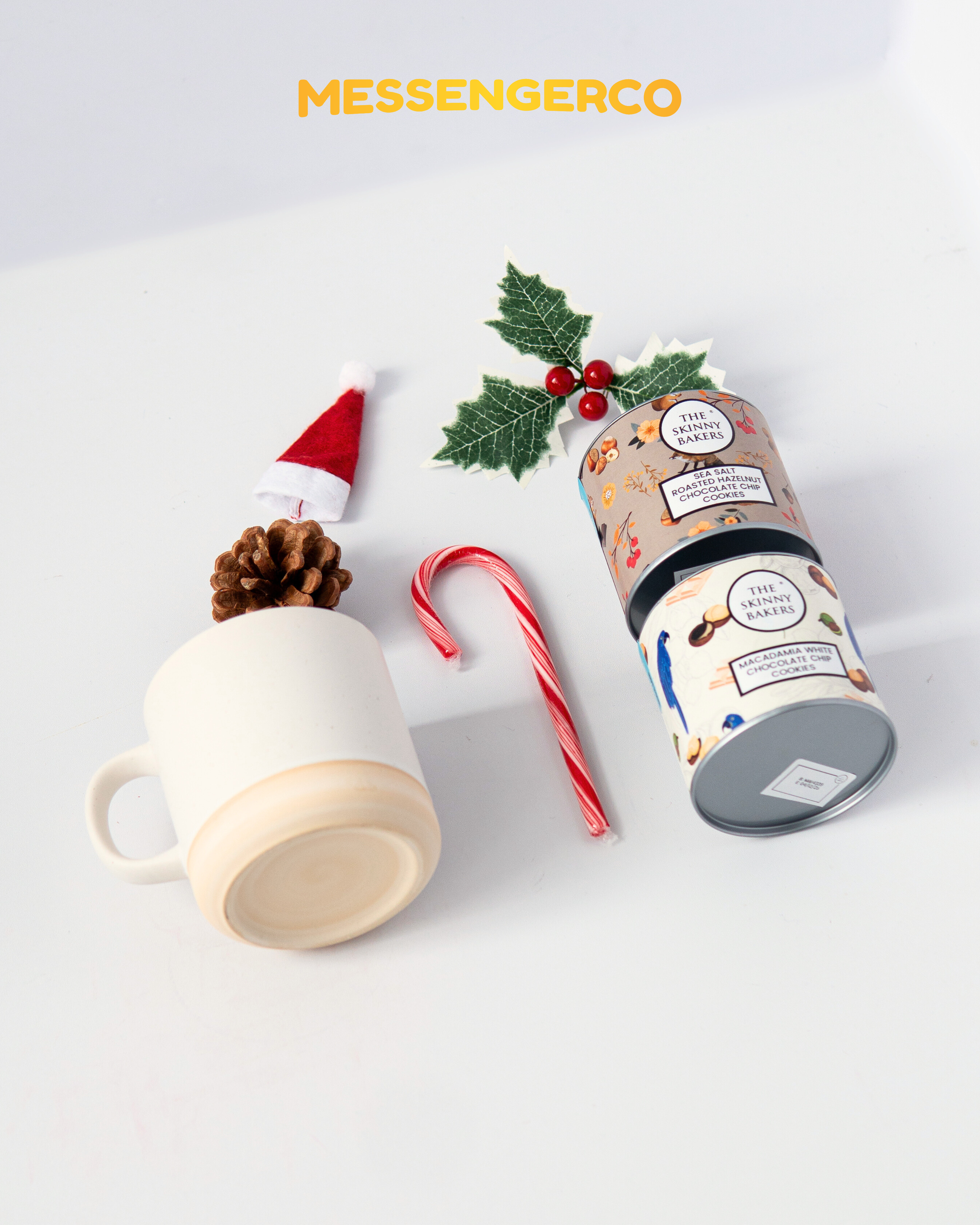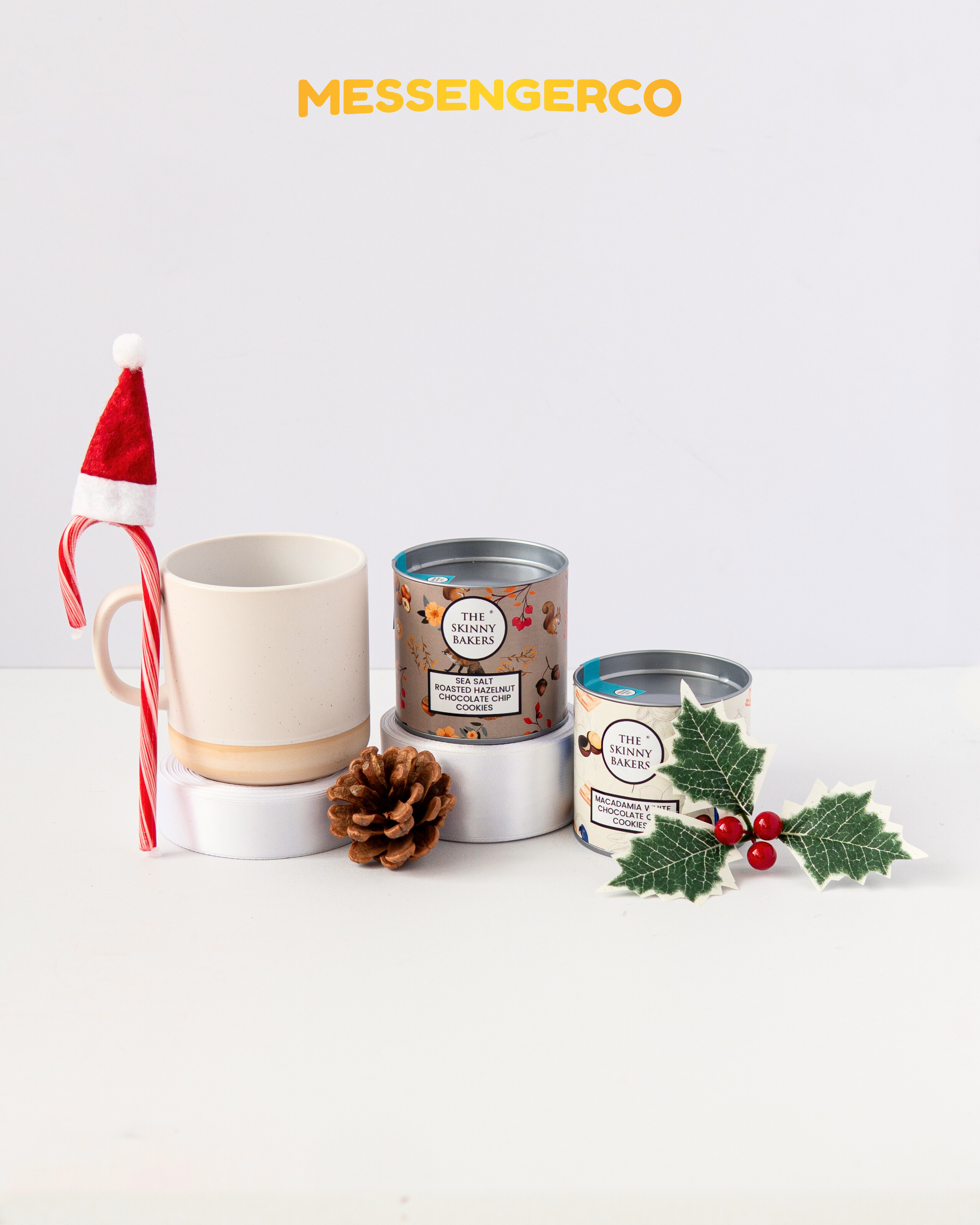 1. SKI0093-04389: Small canister – Macadamia White Chocolate Chip Cookies. A delicious treat combining crunchy macadamias and smooth white chocolate for a festive indulgence.