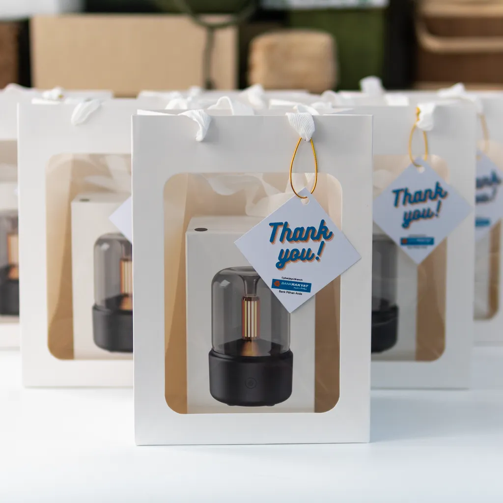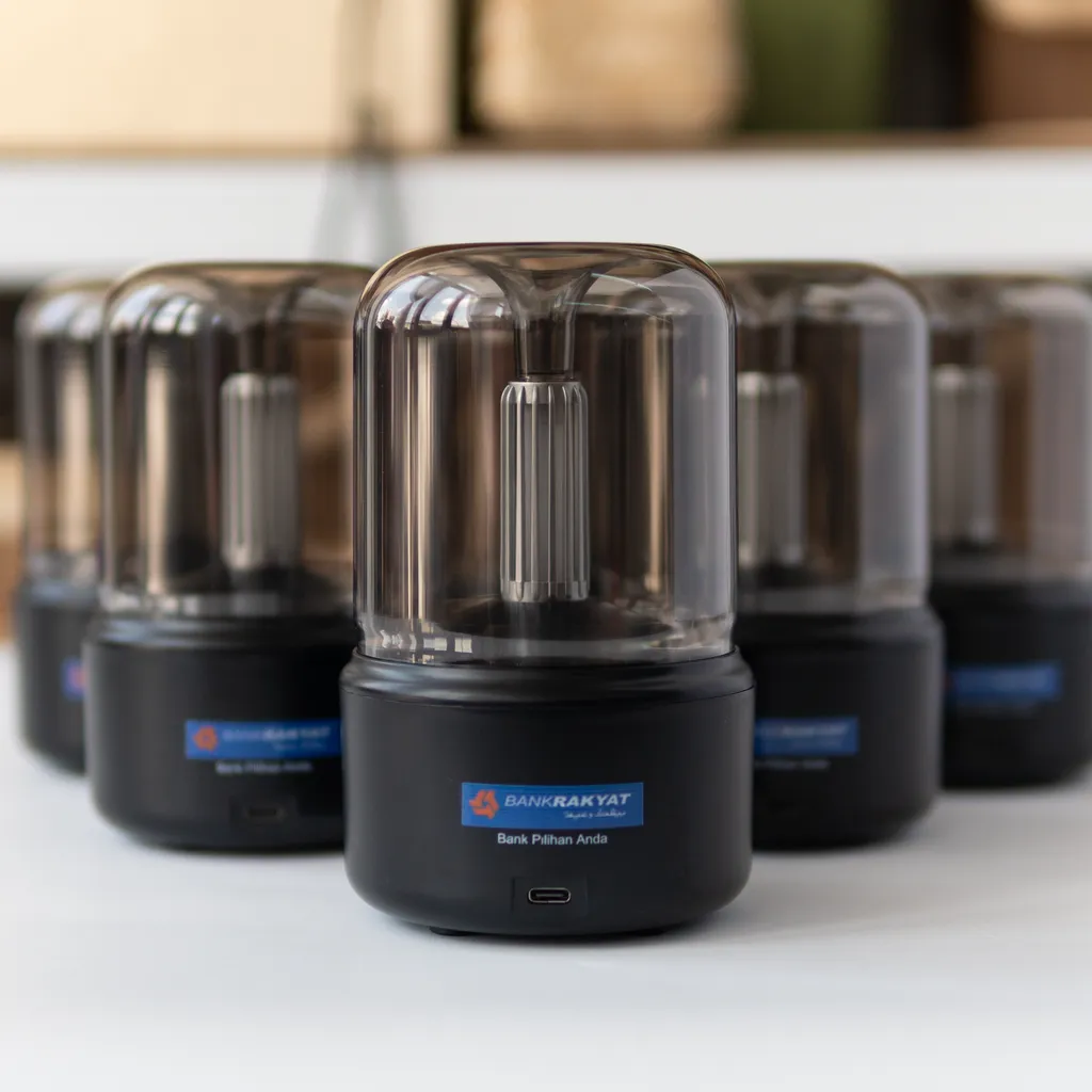 1. GIF0025-00288: Aromatherapy Humidifier Diffuser with LED – Enhances relaxation with soothing mist and gentle light. Features custom logo branding.