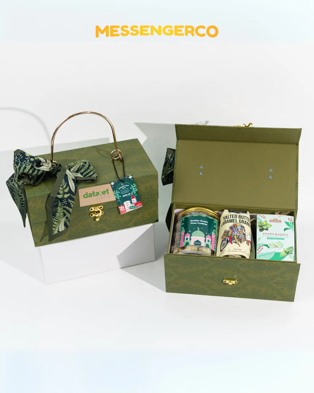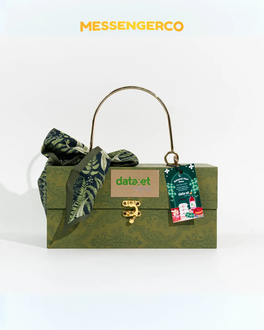 1. CUB0186-05488: Raya Pattern Gift Box with Twilly - Elegant Raya-themed box paired with a decorative twilly scarf.
