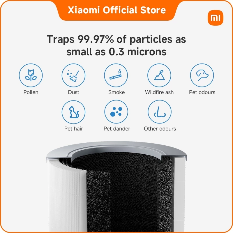 - Triple-Layered 3-in-1 Filter: 360° barrel filter traps 99.97% of particles as small as 0.3 microns, including dust, pollen, smoke, and allergens.