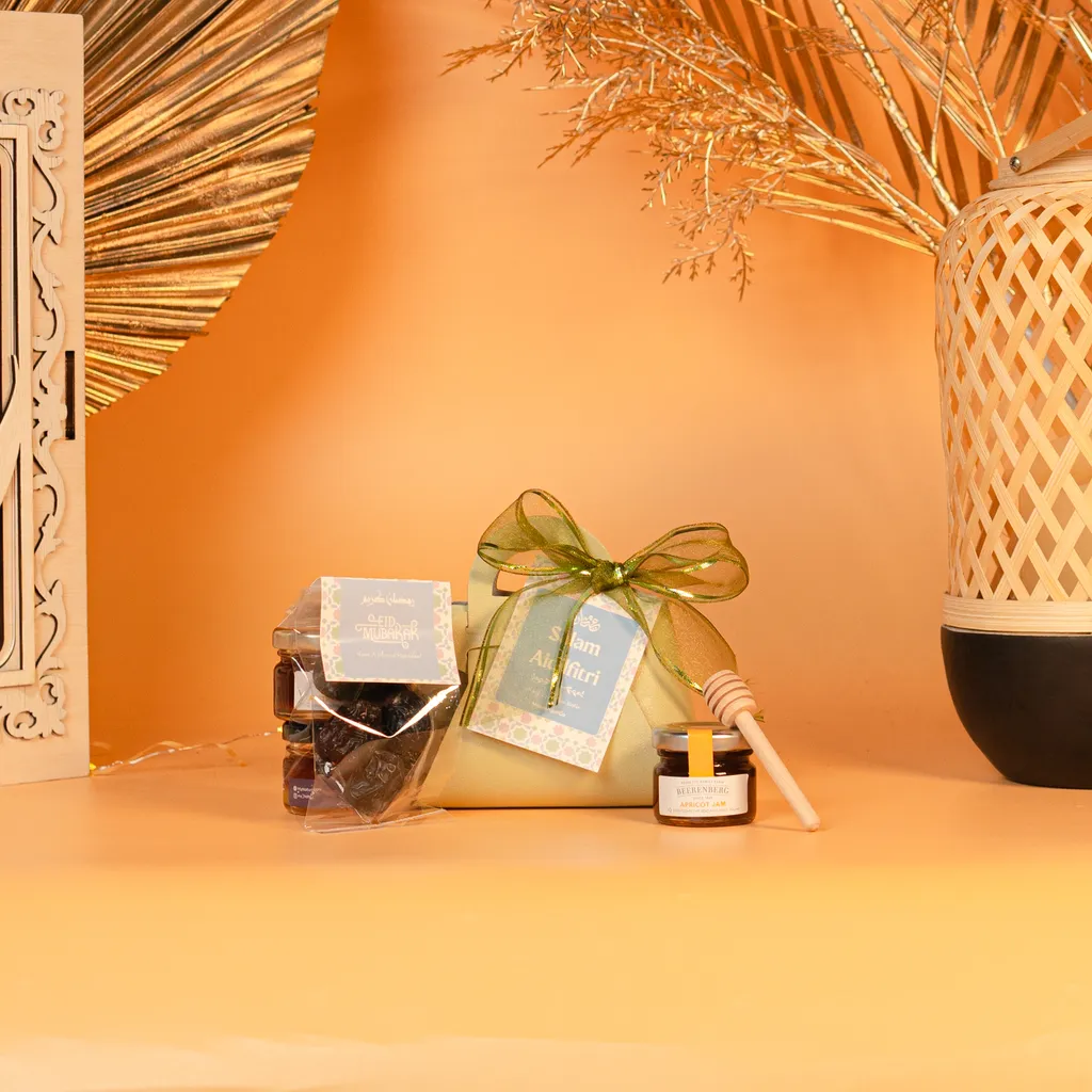 1. MES0091-00363: Kurma Ajwa (7 Pcs | 50g) – Premium Ajwa dates in a clear sealed pack, ideal for gifting during Ramadan and Raya.