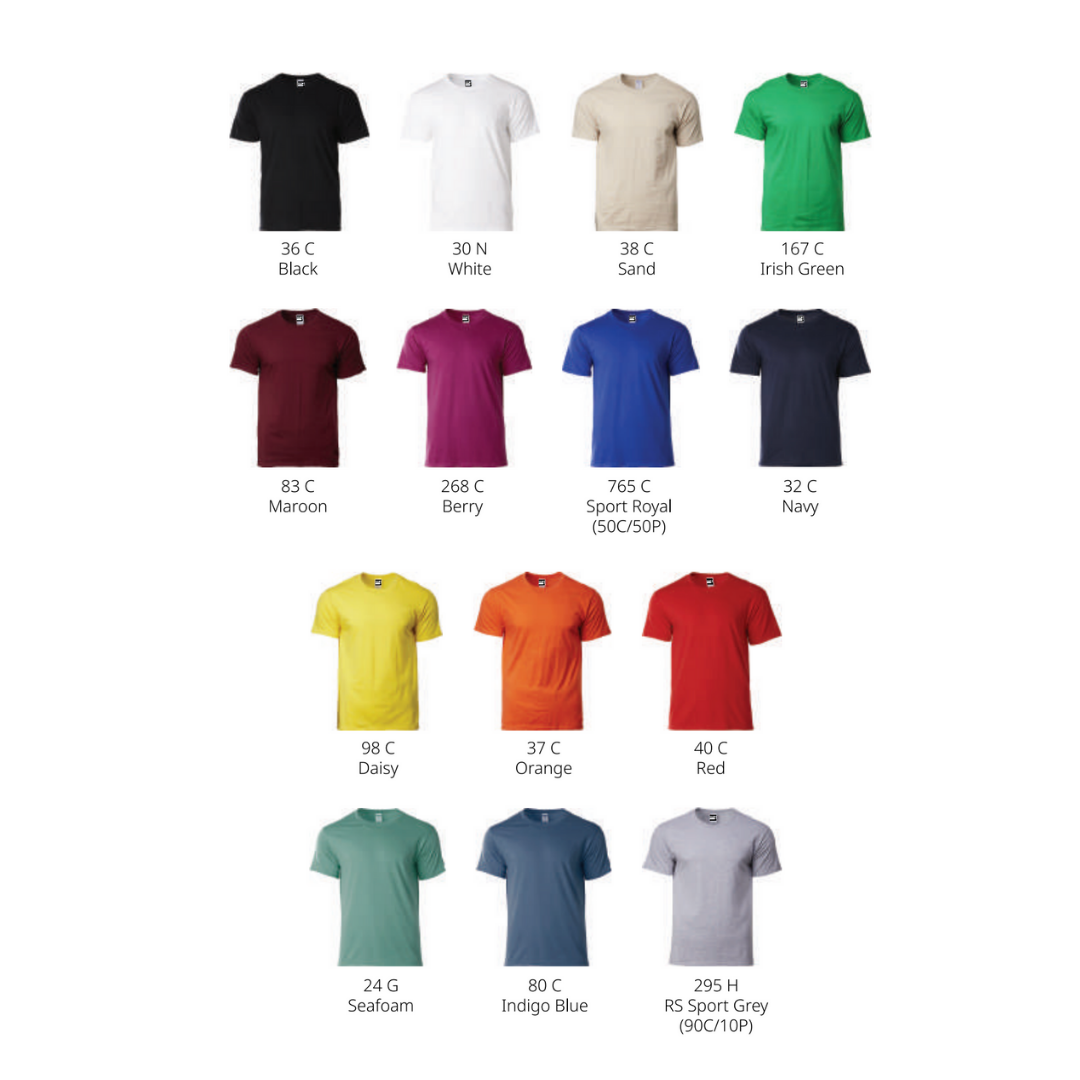• Size Range (White, Black, Navy, Red, RS Sport Grey): XS – 7XL