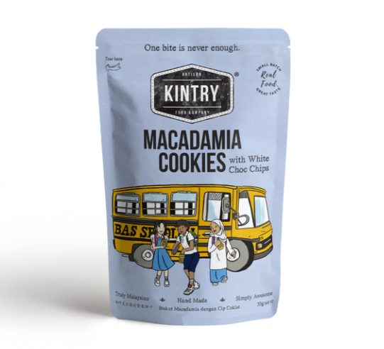 Ramuan: kacang macadamia, tepung, kampung telur, gula, mentega, garam laut, cip coklat putih, serbuk soda bikarbonat, serbuk penaik & vanilla