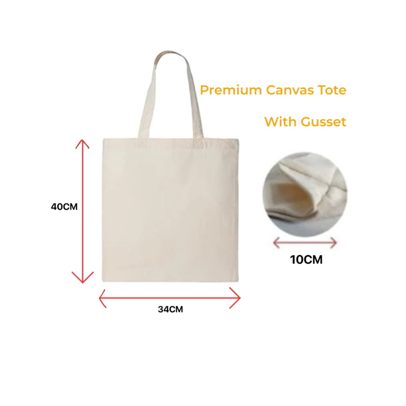 A durable canvas tote bag with gusset, suitable for daily use, events, and retail packaging.