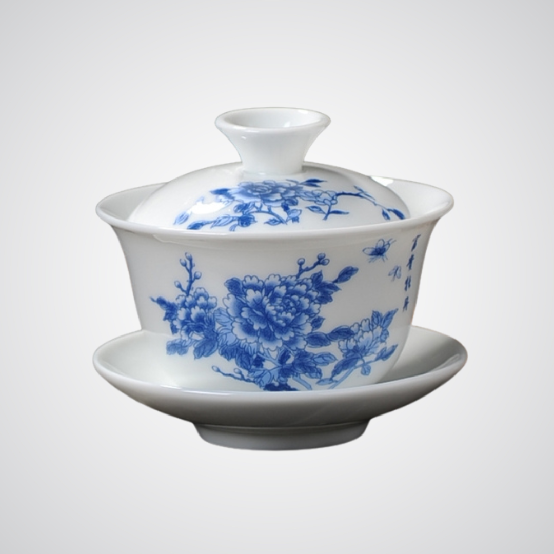 Embrace heritage and elegance with this Chinese Traditional Tea Cup Set, adorned with a classic blue floral motif and designed for an authentic tea-drinking experience.