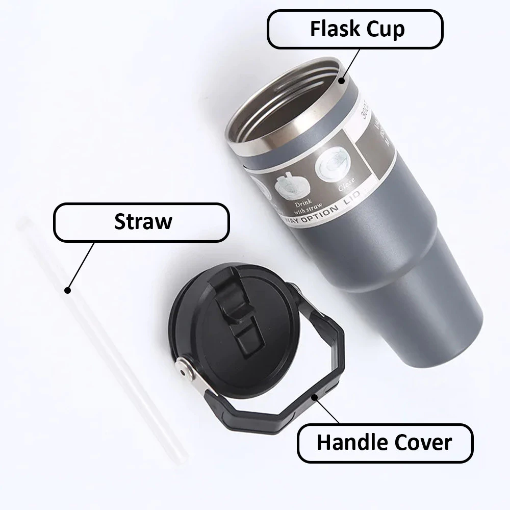 Upgrade your everyday drinking experience with the THERMOVA Stainless Steel Tumbler 890ml. Designed with a high-handle grip and premium insulation technology, this tumbler keeps your beverages at the perfect temperature while staying comfortable to hold. Crafted from food-grade 304 stainless steel, it offers dual drinking options with a hidden straw and direct sip lid—ideal for work, travel, and daily use. Sleek, leak-proof, and practical, THERMOVA 890 delivers both performance and style.