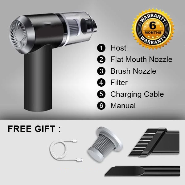 Keep every corner spotless with the VACUMAX 9900 Mini Cordless Vacuum. Compact, lightweight, and wireless, this powerful vacuum delivers 9,900Pa high suction to clean dust, crumbs, pet hair, and more—anywhere at home or in your car. Equipped with LED lights for dark spaces and a rechargeable 2000mAh battery, VACUMAX 9900 makes cleaning effortless, convenient, and efficient.